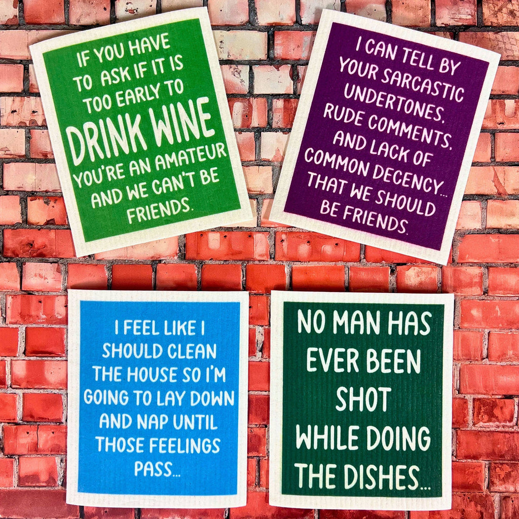 Our Swedish Sponge cloths are the superior dishcloth for dishes and other household cleaning. Swedish dishcloths are super absorbent and leave a streak free clean. We import all our Swedish dishclothes from the original maker of clothes and are printed in our facility right here in the USA.