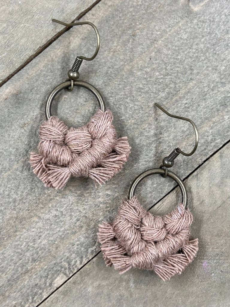 This tiny pair of macrame earrings were hand knotted with mocha colored cotton cord on round antique bronze rings. These are lightweight to wear and have nickel free antique bronze plated earring wires. Each earring is 2 1/4 inches long and 1 1/2 inch wide. Perfect size for those who prefer to wear smaller earrings. Be sure to check out the rest of my micro-macrame jewelry in the shop!